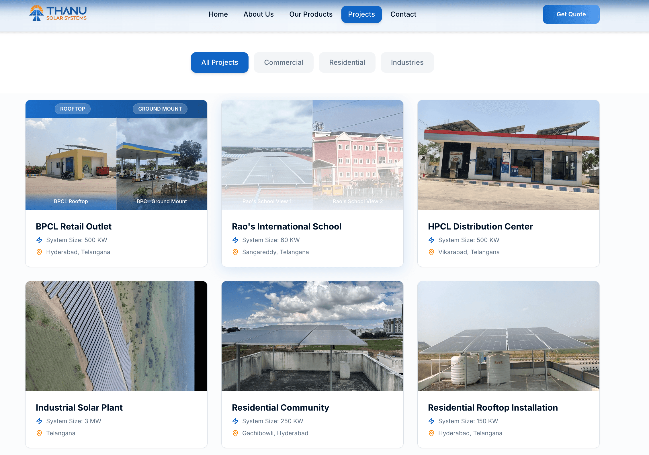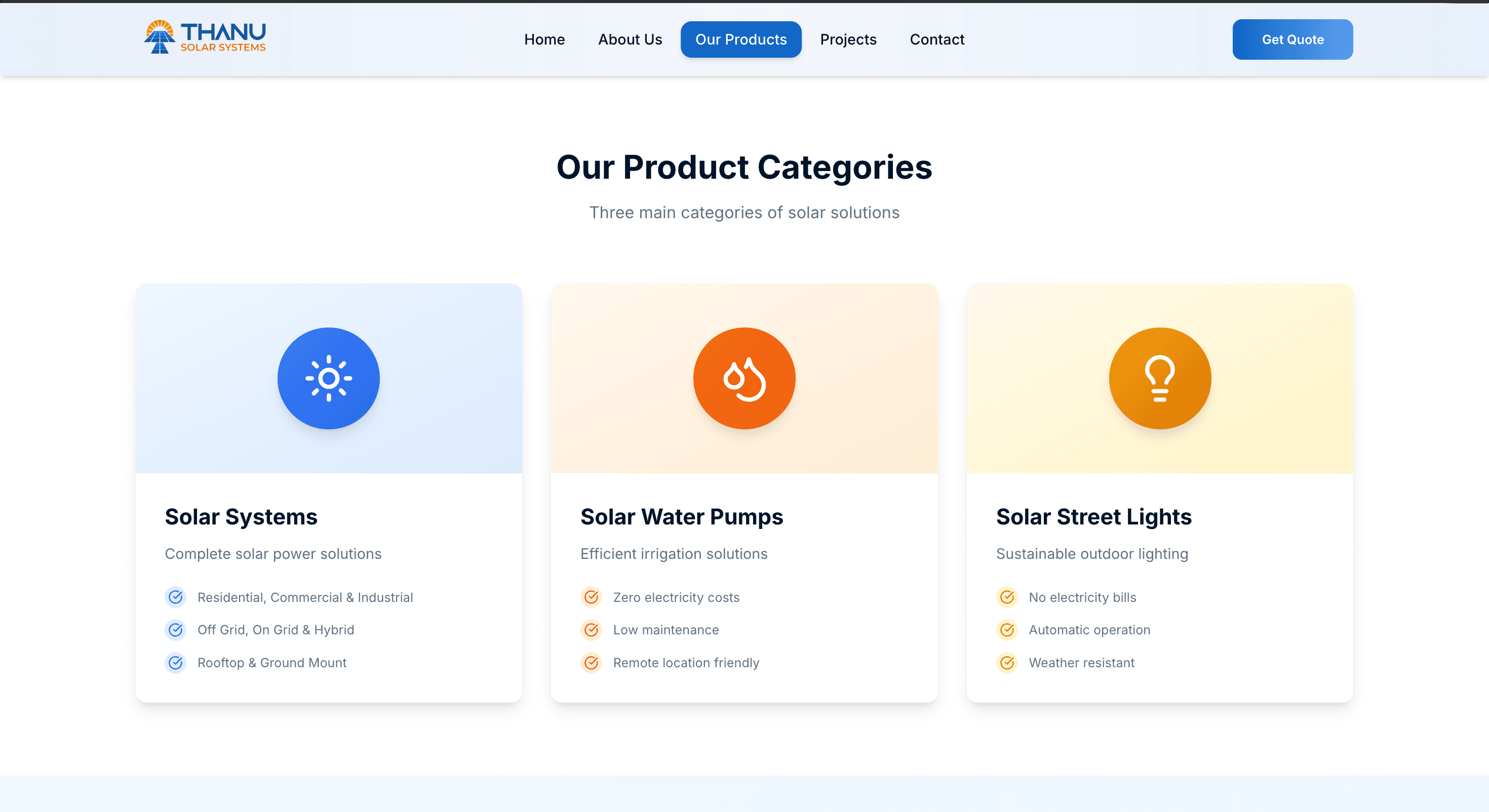 Thanu Solar Systems is a modern solar solution provider empowering homes and businesses with reliable, cost-efficient, and sustainable energy. Our goal was to create a fast, visually engaging, and conversion-focused website that builds trust while educating users about solar benefits. The result is a clean, performance-optimized site tailored for real leads and customer engagement.